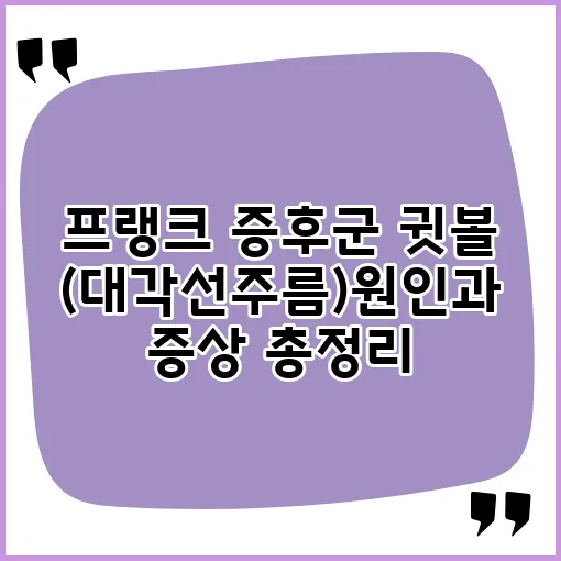 프랭크 증후군은 귓볼에 나타나는 대각선 주름으로, 많은 사람들이 이를 겪으며 그 원인과 증상에 대해 궁금해합니다. 귀 주름 진단을 통해 이 증후군을 이해하고, 진단 방법과 치료 선택지를 알아보는 것은 매우 중요합니다. 오늘은 프랭크 증후군, 귓볼 대각선 주름의 원인 및 증상에 대해 깊이 있게 살펴보겠습니다. 이 내용을 통해 많은 분들이 궁금해하는 질문들에 대한 해답을 찾을 수 있을 것입니다.