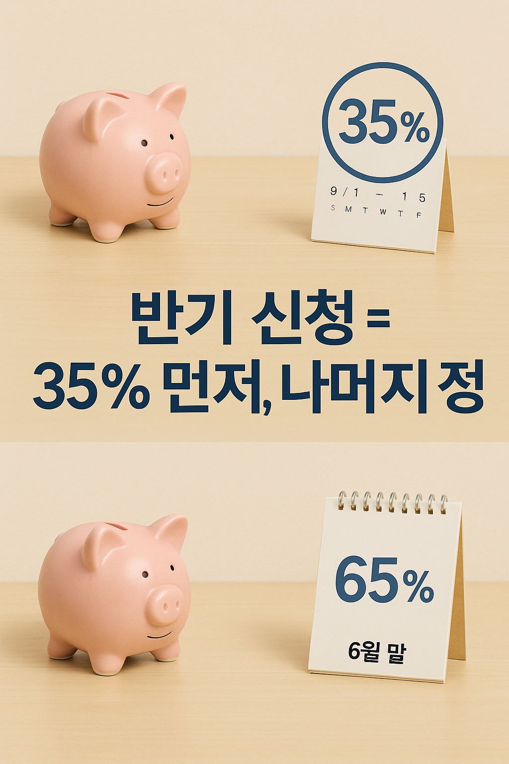 즉, 반기 신청 시 매 반기마다 35%씩 먼저 받고, 나머지는 정산을 통해 받도록 설계되어 있습니다.