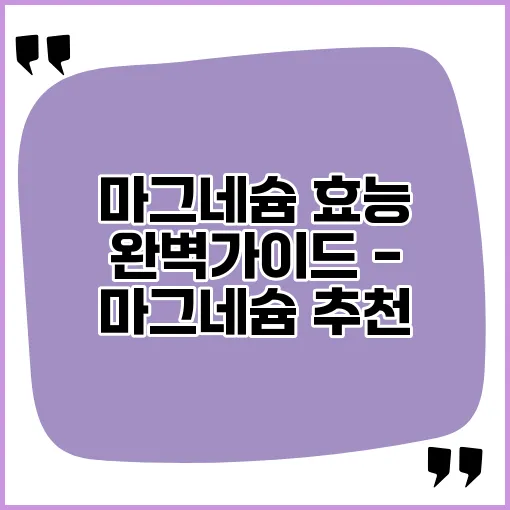 마그네슘의 효능은 실로 다양합니다. 스트레스 관리에서부터 심장 건강 증진까지, 이 소중한 미네랄이 우리의 삶에 중요한 역할을 한다는 사실을 잊지 말아야 합니다. 마그네슘 영양제를 통해 적절한 섭취를 도와주는 것도 현명한 선택일 것입니다. 마그네슘에 대한 이해가 깊어짐에 따라, 여러분의 삶이 더욱 건강하고 행복해지길 바랍니다. 마지막으로, 마그네슘 추천 제품은 여러분의 건강을 지키는 훌륭한 동반자가 될 것입니다.