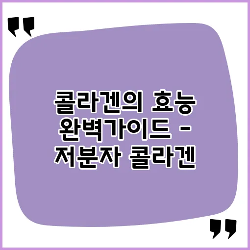 저분자 콜라겐의 장점은 무엇인가요?